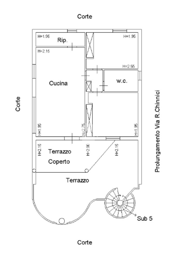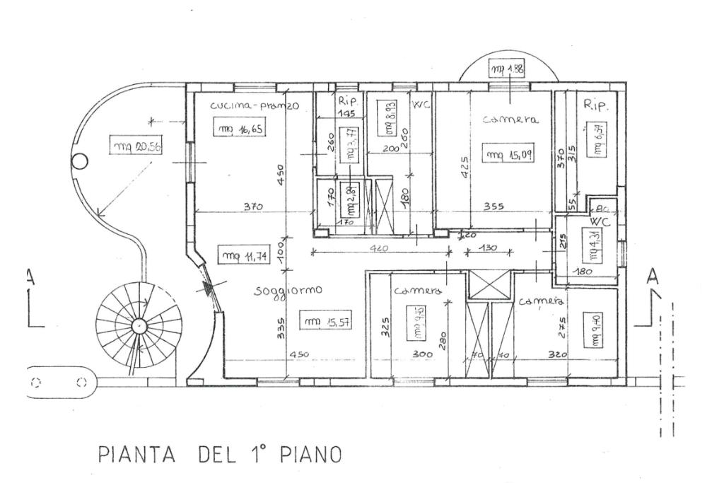 Al primo piano si trova un appartamento di circa 120 metri quadrati, attualmente allo stato grezzo.