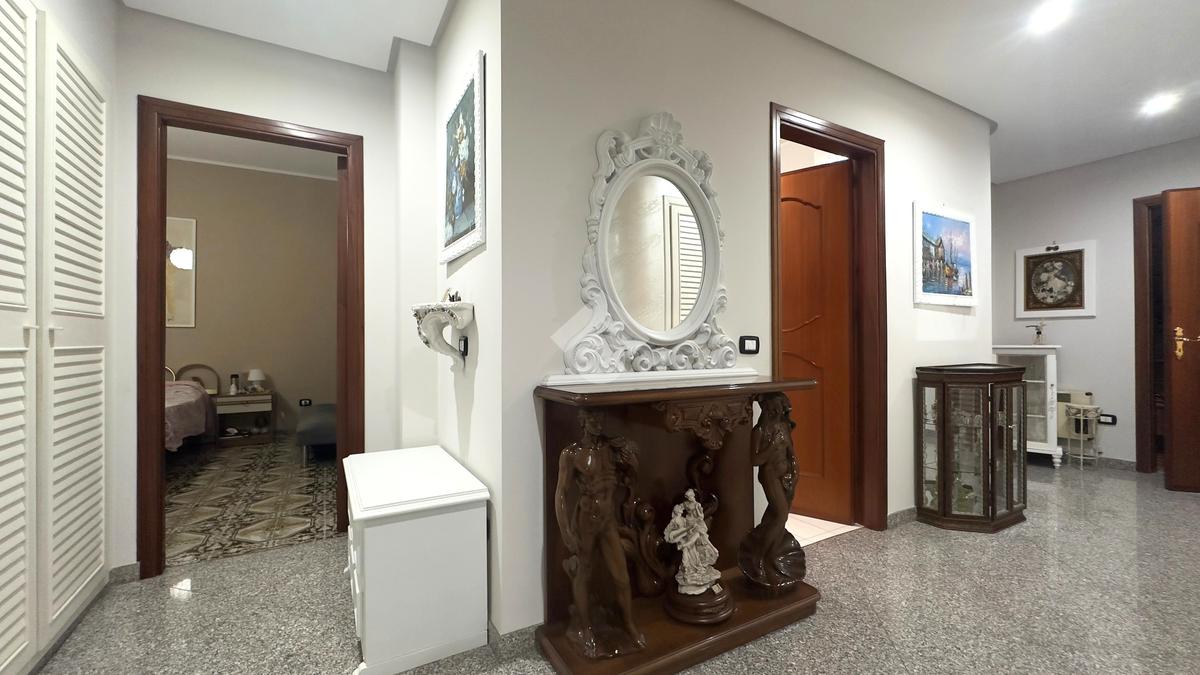 L'immobile si apre su un ampio disimpegno che distribuisce in modo funzionale gli ambienti, separando la cucina dall'accogliente e spazioso soggiorno. La zona notte è composta da tre comode camere da letto e due bagni.