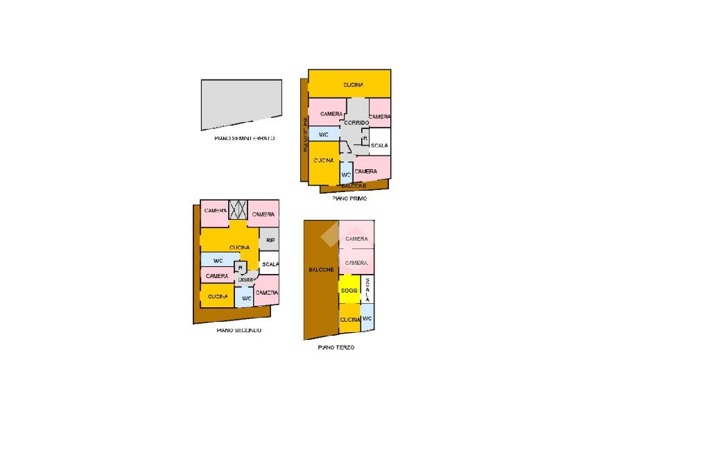 L'immobile si suddivide in tre elevazioni fuori terra e piano seminterrato;